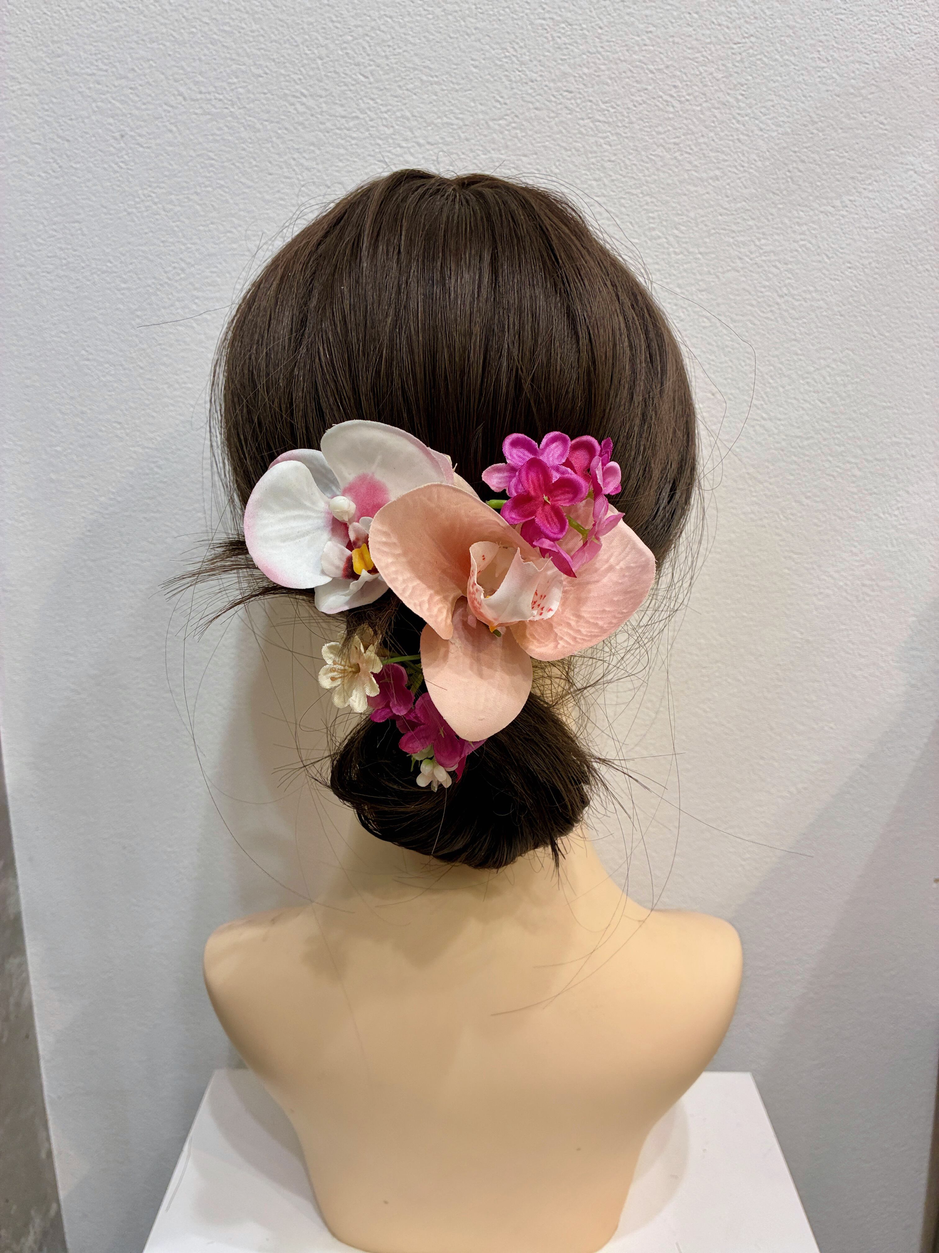アーティシャルフラワーで軽やか&扱いやすく、着物浴衣にしっくり馴染みます。