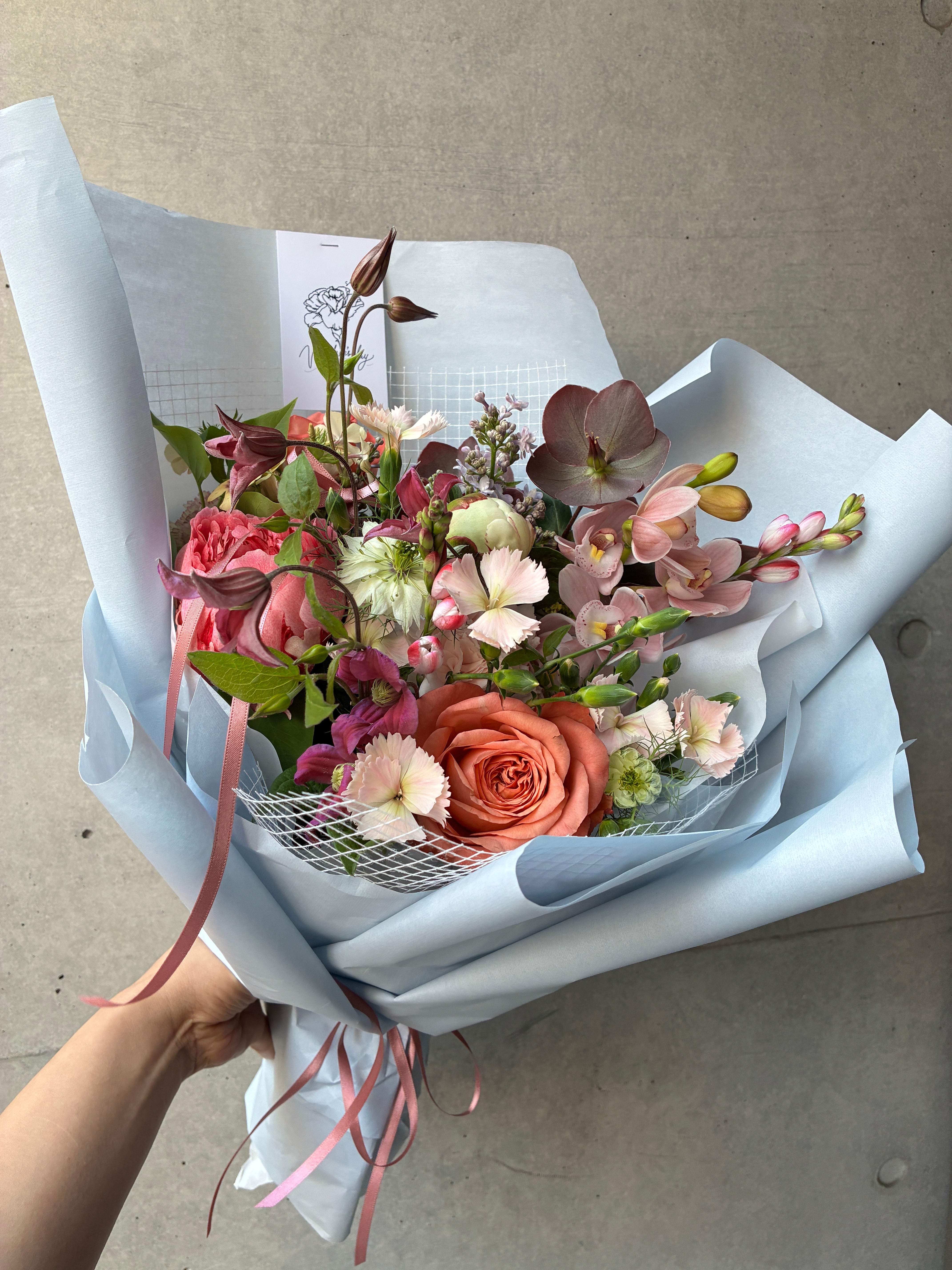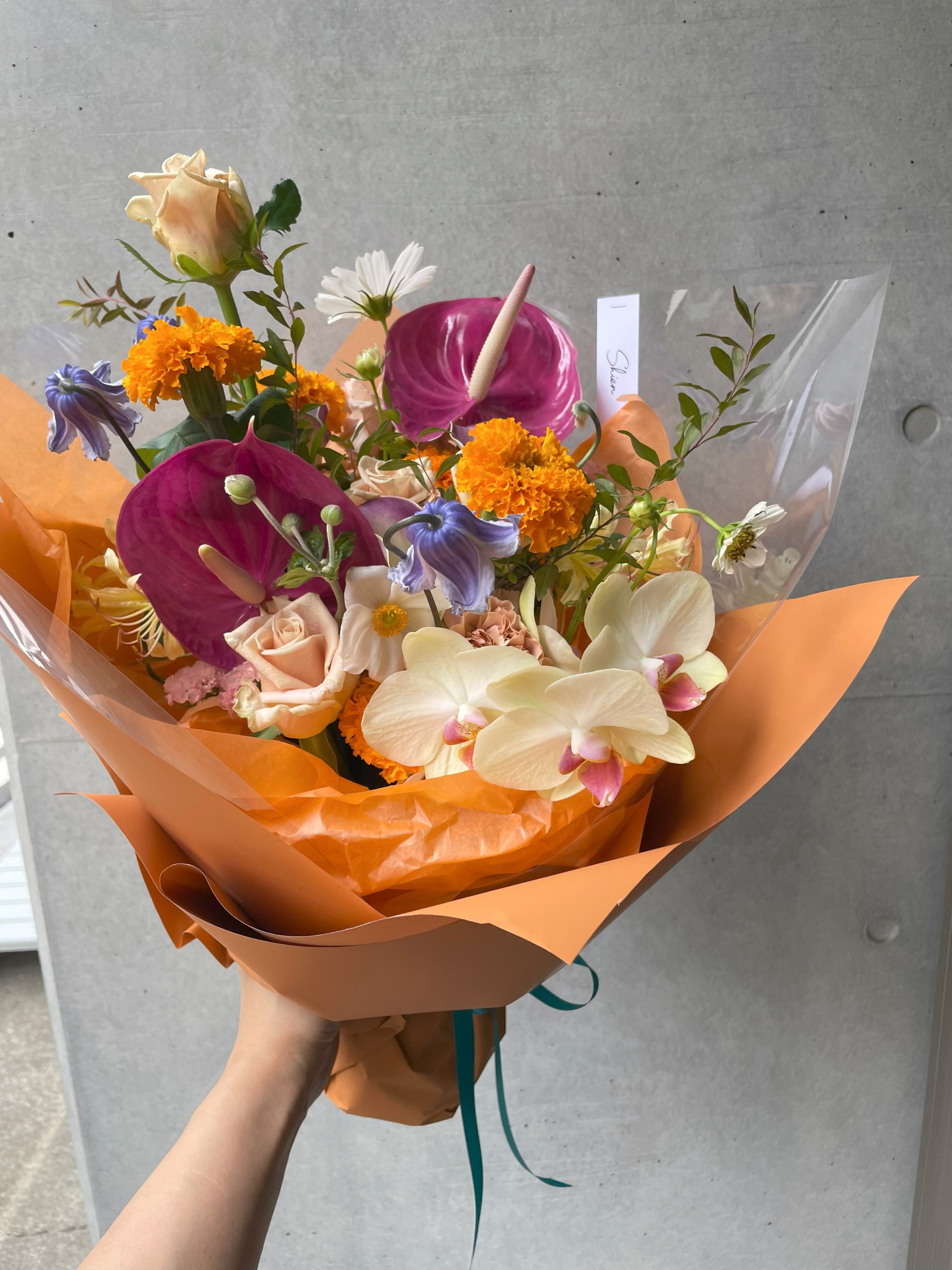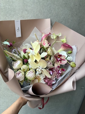 季節の花々を贅沢に束ねた華やかなブーケです。