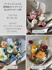 掲載写真はサンプルイメージです。 その日の仕入れ状況に合わせて、旬の花を選び、ひとつひとつ心を込めてお作りいたします。