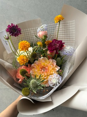 オプションでお選び頂きますラッピングカラーに合わせてご希望のカラートーンで仕上げるカジュアルにお使いいただけるブーケです。