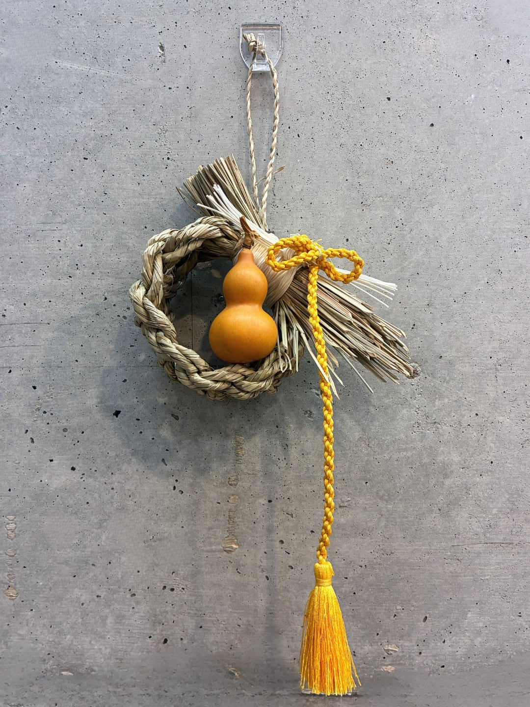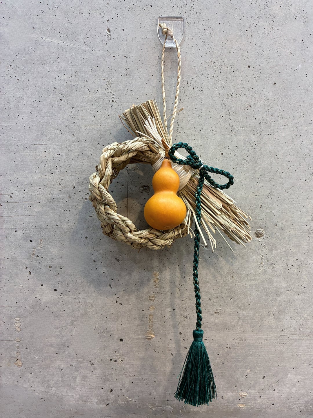 魔除け・疫病除けの効果を象徴し、大漁や幸せを掴む意味を込めた網目デザインのお正月飾りです。ご縁を願った組み紐で結った2026年新デザインシリーズです。組み紐は魔除けを表す「赤」、繁栄祈願の「黄」、成長、繁栄、安らぎ、調和を象徴し、新年の願う「緑」、愛情、優しさ、健康、長寿を願う「紫」の4色からお好きな色をオフションからお選び頂けます。