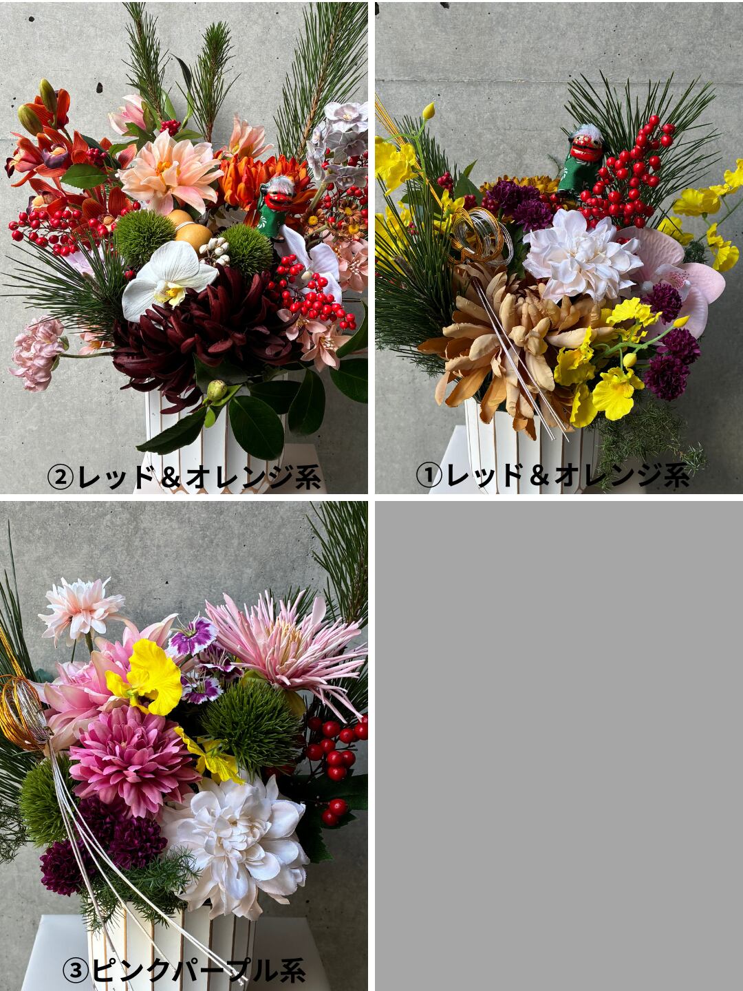 オプションで花材の色味をお選びください。