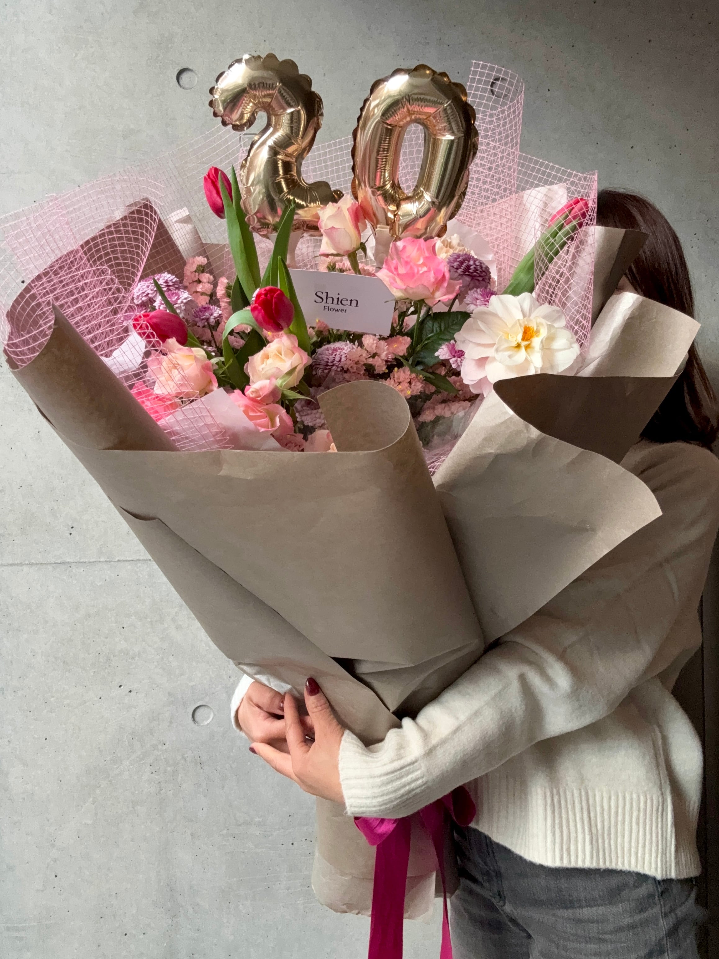 成人の晴れの日を彩る、抱えるほどの大きさのBIGブーケ。