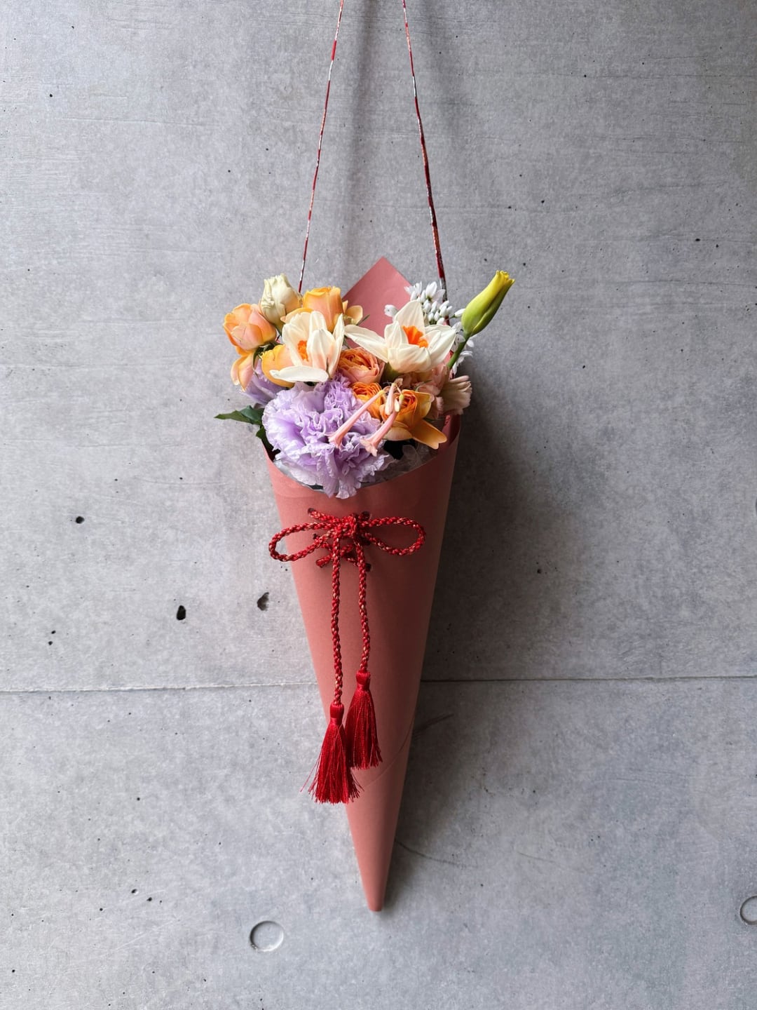 強く結ばれた紐のように、つながりを深める限定ラッピングを数量限定でご用意しました。組紐や結びは古くから人生の節目や特別な瞬間に使われる縁起の良いモチーフとして大切にされてきたもの今回の肩掛けラッピングの花束は、和装に似合う成人式の喜びを彩る特別な商品です。