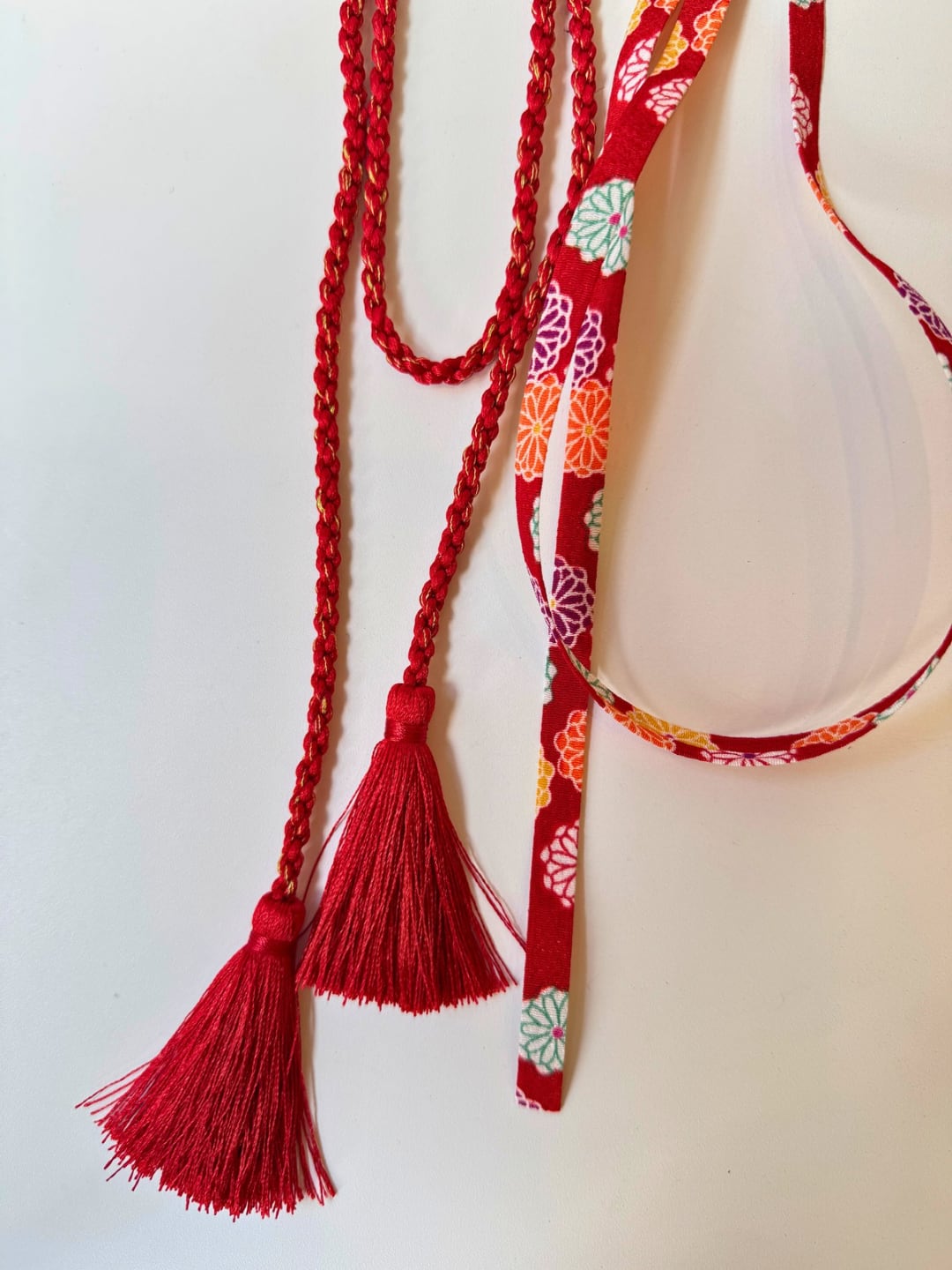 くすみローズのヴィンテージローズ「長春色(ちょうしゅんいろ)」の華包✖︎ 力強く鮮やかな赤、ファイアリー・レッド「猩々緋(しょうじょうひ)」の結紐