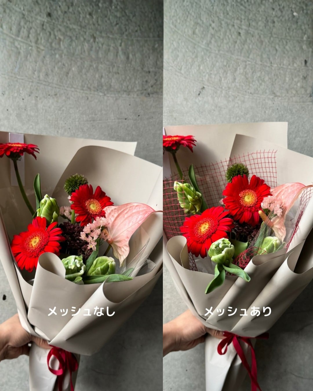 お渡しが翌日以降となる場合は、鮮度を保つため保水ジェルの追加購入をおすすめいたします。