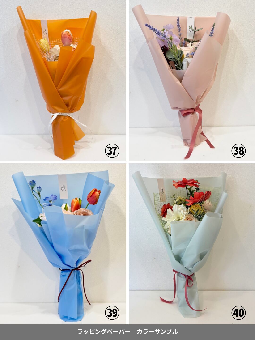 掲載写真サンプルの中からカラーをお選びください。未選択の場合は、季節やデザインに合わせたおすすめカラーでお包みいたします。