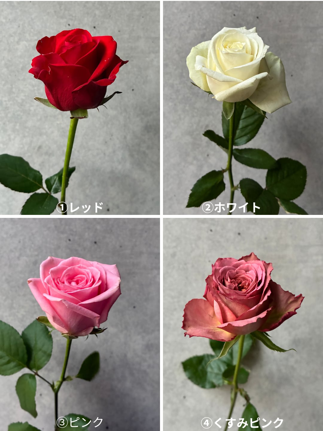 ※茎の長い仕上がり希望時は店舗受け取りまたは50本以上から特別配送での承りになります。ホームページのお問い合わせからご相談ください。